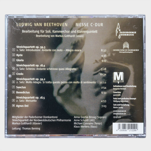 Hinweis: Mitten in der Corona-Zeit entstand 2020 eine Bearbeitung von Ludwig van Beethovens Messe in C-Dur für Soli, Kammerchor und Klavierquintett. Das Ergebnis ist zeitlos und bewahrt seine Strahlkraft weit über die Pandemie hinaus. Diese Aufnahme hatte es im Mai 2022 auf die Monatsempfehlung bei jpc.de geschafft.