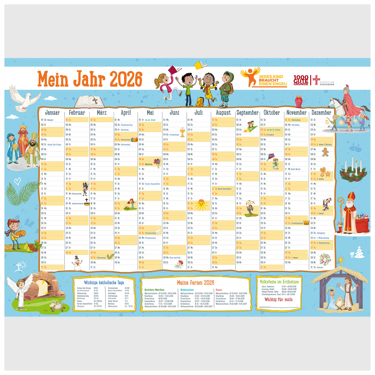 Jahreskalender: Der neue Jahreskalender 2026 als Maxiposter ist ein schöner, übersichtlicher Begleiter für alle Kinder und Familien, Kinder- und Jugendgruppen – er ergänzt den Schuljahreskalender, der das Schuljahr von August bis Juli umfasst und speziell für Schulklassen gedacht ist.