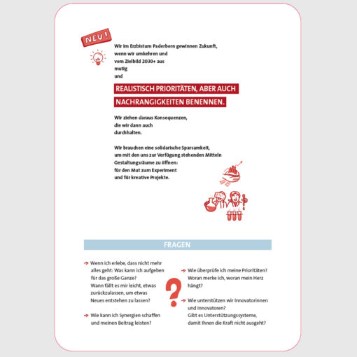 Hinweis: Die Grundsätze des Zielbildes 2030+ (“Wir im Erzbistum Paderborn gewinnen Zukunft, wenn …”) mit Impulsfragen für das Gespräch in Gruppen.