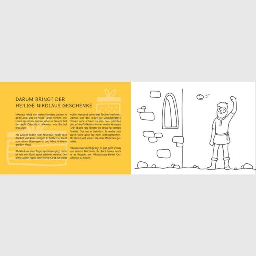 Hinweis: Mit Geschichten zum Vorlesen, Liedern zum Singen und Bildern zum Ausmalen stimmt das Mal- und Vorleseheft auf die Advents- und Weihnachtszeit ein.