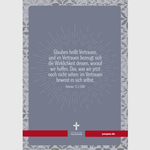 Das Workbook umfasst 80 Seiten mit insgesamt fünf Kapiteln, die aufeinander aufbauen, aber auch einzeln oder kreuz und quer durchstöbert werden können: Denken & Fühlen, Zweifel & Krisen, Mut & Vertrauen, Glück & Hoffnung, Beten & Danken. Auf diese Weise ist das Buch besonders für junge Menschen, die noch wenig oder keinen Bezug zum katholischen Glauben haben, eine Einladung, ihren eigenen Weg zu Gott zu finden – und unterwegs sich selbst zu begegnen.